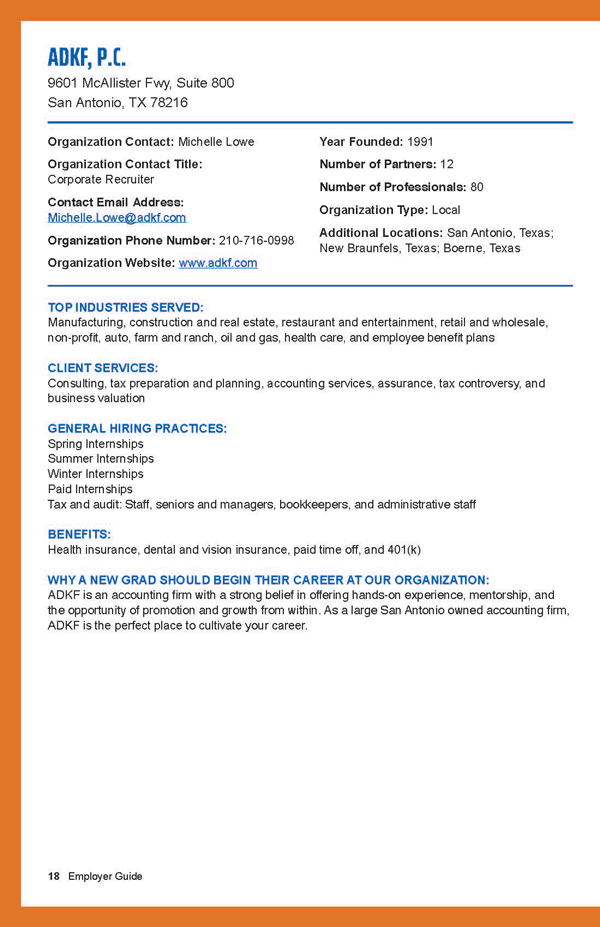 The 2024-25 Edition - deadline to purchase an ad for your organization is Aug. 7, 2024.If you are interested in listing your firm in the new edition scheduled to be published in the fall of 2024, please complete this Employer Guide interest form. Participating organizations must have at least one TXCPA member to purchase a listing or upgraded advertisement. If you have questions or need any additional assistance, please contact Melinda Bentley (972-687-8579). |