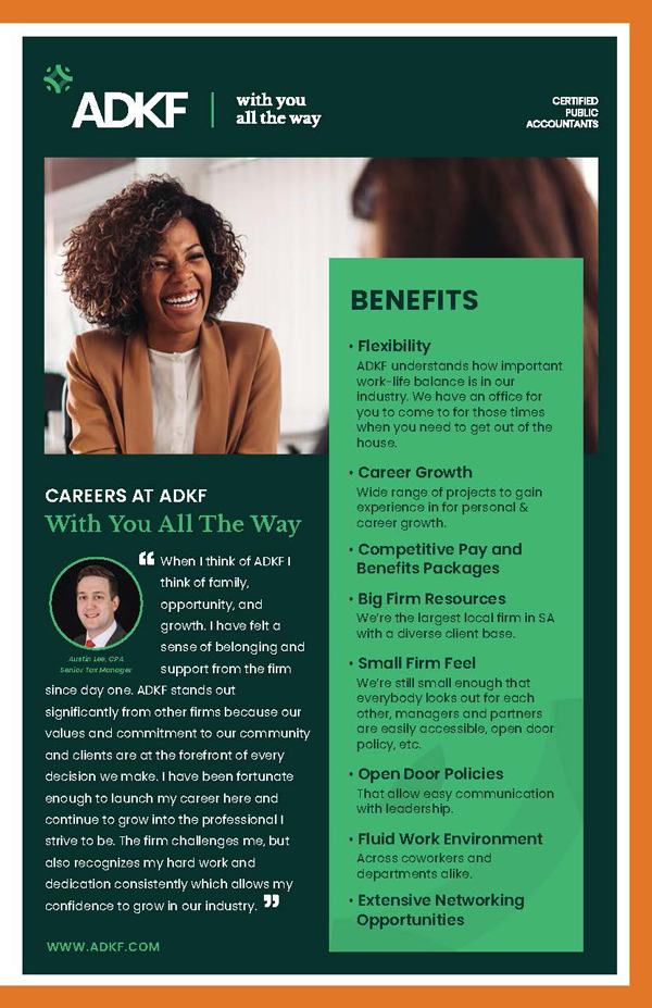 Printed copies will be delivered to all Texas college and university accounting educators, university career centers and participating firms/companies. A digital copy will be promoted organization-wide in Today’s CPA magazine and TXCPA e-newsletters, and via our website and social media channels.